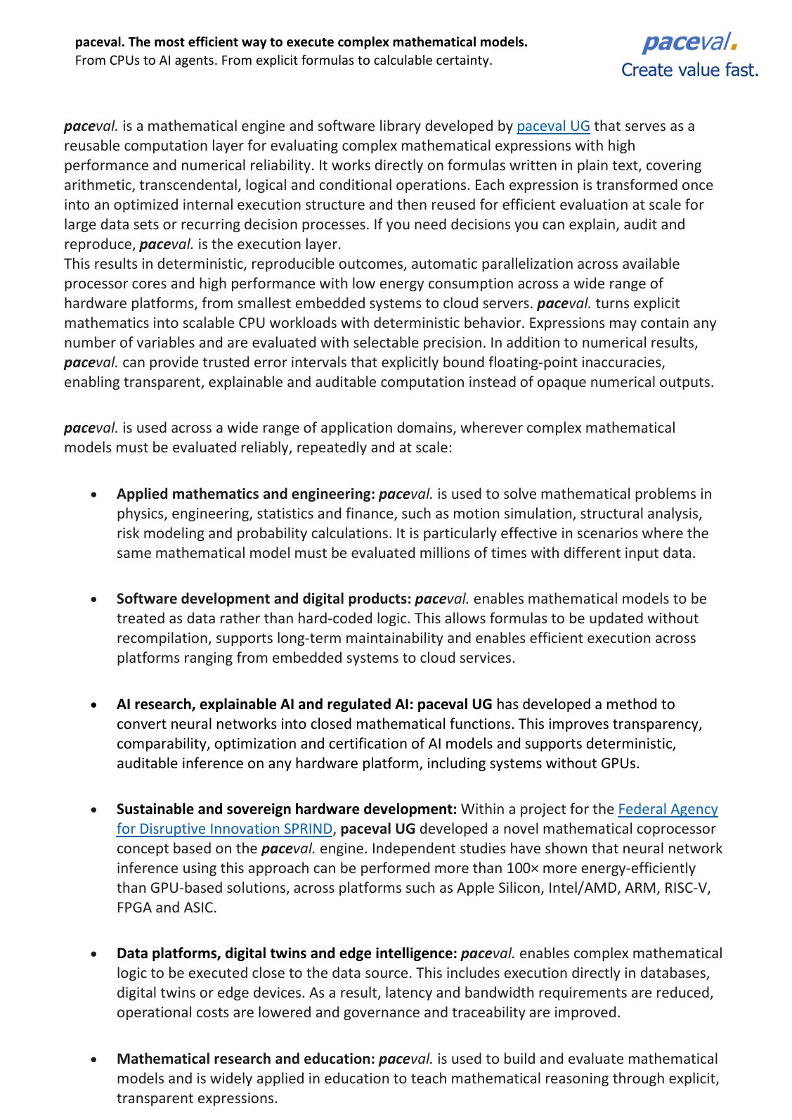In a nutshell: This presentation explains what motivated the paceval UG to develop the paceval. mathematical engine. An ideal architecture of a mathematical engine should be based on the principles of transparency, traceability and continuous improveability.